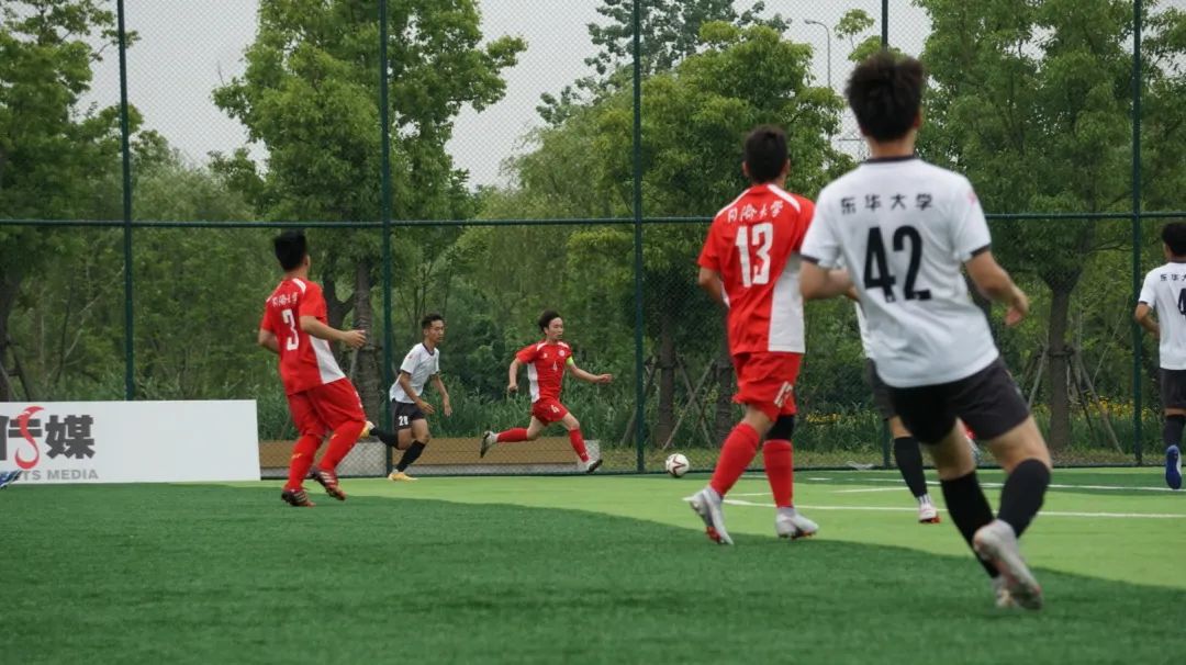 7分钟,东华大学在反击中打进一球,将比分扳平,1:1。